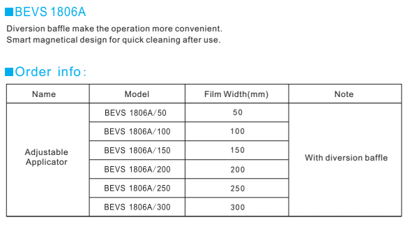 The adjustable applicator can make different thickness film by adjusting the two micrometers on top to lift up and down the scraper. The high-precision micrometer is in increments of 10μm.